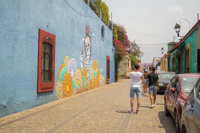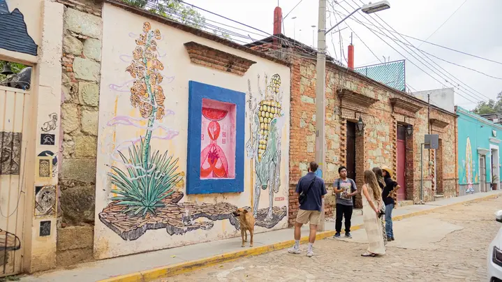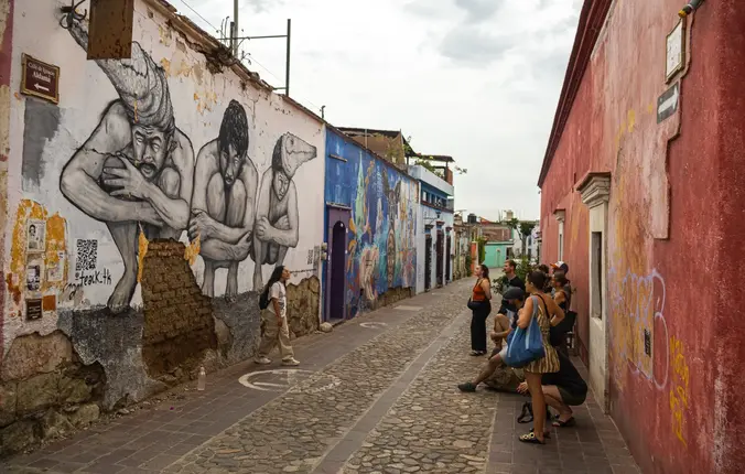 El barrio de Jalatlaco es un barrio icónico cuya escena artística, arquitectura de colores vibrantes y atmósfera relajada se han convertido en el núcleo del arte callejero de Oaxaca.
