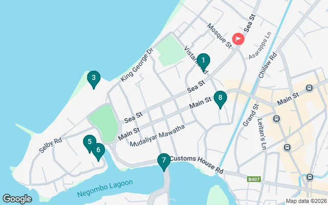 Como ciudad multicultural de Negombo, comenzamos en el templo Sri Mutthu Mari Amman en Sea Street. Y caminamos a través del marcador local donde los vendedores venden verduras y frutas en puestos. King Gorge Drive recibe su nombre de la visita a King Gorge a la ciudad. La carretera va paralela al mar Índico, donde se encuentra la zona de actividad de los pescadores y el centro de procesamiento de pescado seco.