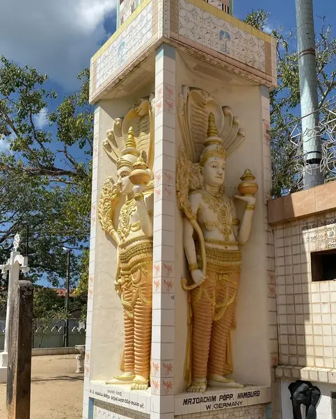 Cuando nos cansemos del olor a pescado seco, caminaremos por el mercado de pescado (Lellama) y junto a la prisión (antes del fuerte holandés). Pasaremos por el famoso puente Kothlawala, donde podrá tomar una bonita foto de los barcos de pesca. Luego caminaremos de regreso al lado opuesto y la siguiente parada será la Catedral de Santa María en Negombo. Luego, los viajeros pueden comprar bocadillos picantes de Sri Lanka o dulces con refrescos. Nuestro guía nacido en Negombo le mostrará y explicará cada parada.