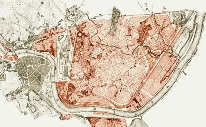 En 1876, envuelta en un desarrollo sin precedentes propiciado por el despegue industrial, Bilbao aprueba el proyecto de lo que hoy conocemos popularmente como Ensanche. Decenas de arquitectos, en su mayoría vascos, pero influidos por las tendencias internacionales de la época, y bajo el lema "act local, think global", dan forma a una de las tramas urbanas más elegantes de Europa.