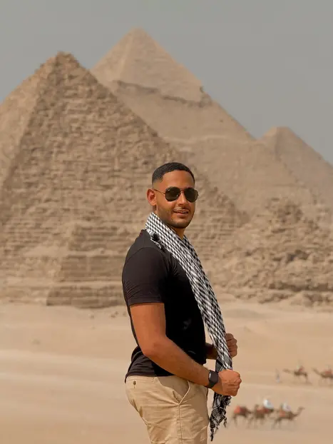 Mi nombre es Mohamed Dawood Trabajo en el British Council De lo contrario, me gusta acoger y guiar turistas por eso estudié orientación durante 9 meses para poder hacerlo de una buena manera con conocimientos. Han pasado casi 3 años y medio desde que ' Empecé a recibir y guiar turistas en El Cairo.