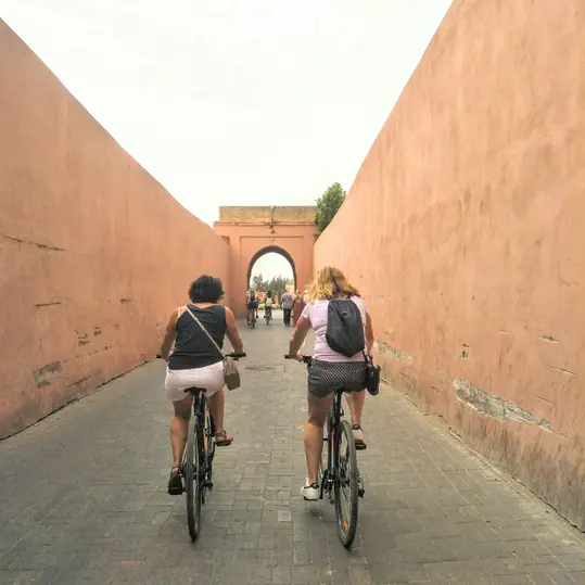 Simplemente andar en bicicleta por Marrakech te hará sentir como un sultán mientras descubres el interior de esta ciudad antigua e imperial. Andar en bicicleta a lo largo de las murallas medievales de arcilla roja de la ciudad en particular seguramente hará de su visita a Marrakech una experiencia extraordinaria.
