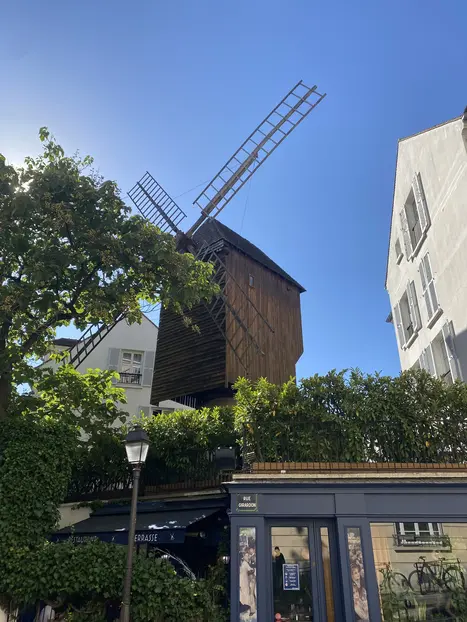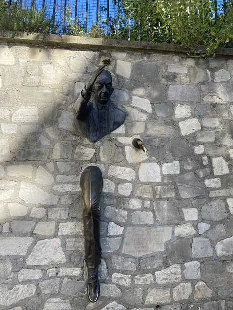Siguiendo su recorrido, desde allí nos llevo hasta el busto de Dalida, donde parecía querer dar amor a la desafortunada artista... Alzó de nuevo el vuelo la paloma, dejando atrás la estatua del obispo Saint Denis y en dirección hacia el Passe-muraille hasta detenerse en las astas del gran molino de la Galette.