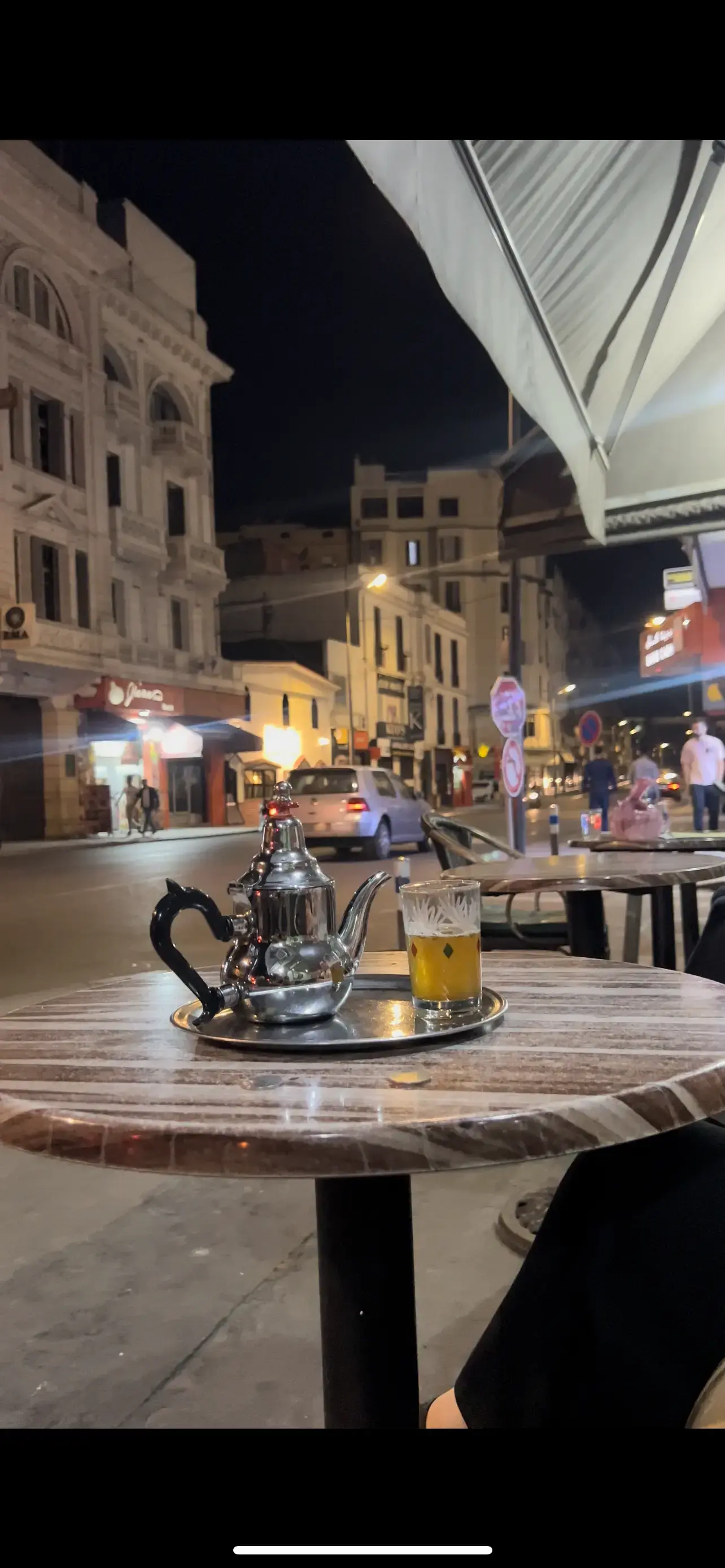 Nos sentaremos en un café que se centra alrededor de un lugar vibrante para combinar nuestro pastel con un té de menta fresco mientras observamos la vida nocturna que pasa por el lugar.