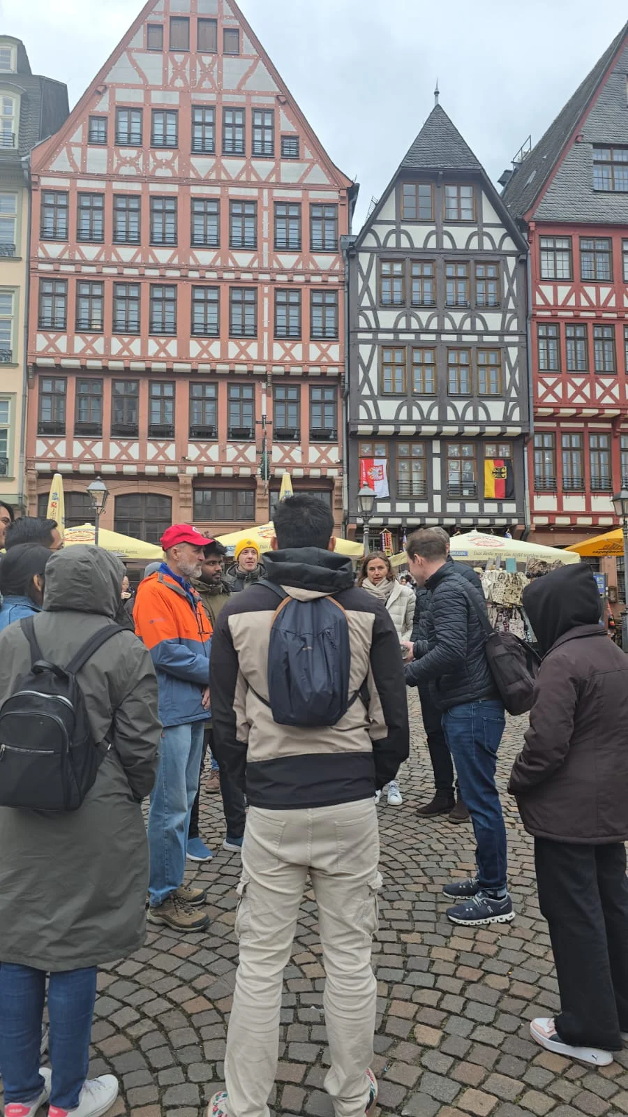 - Punto de encuentro: Nos vemos en la Fuente de la Justicia en el Römerberg . Me reconocerás por mi paraguas rosa.