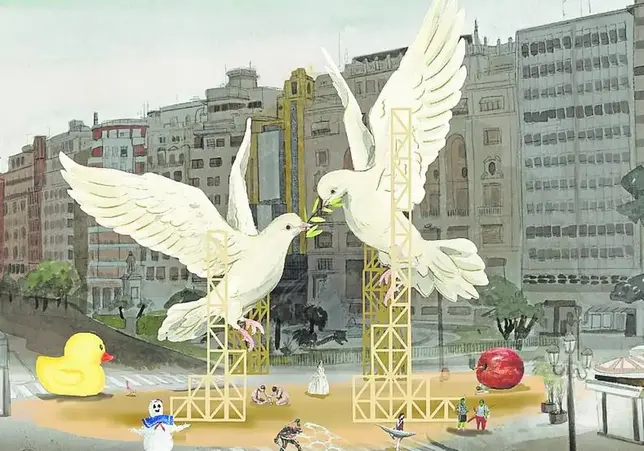 Comenzaremos el viaje en el IVAM, junto a su puerta de entrada, donde hablaremos de la experimental falla de la plaza del Ayuntamiento, el monumento municipal.