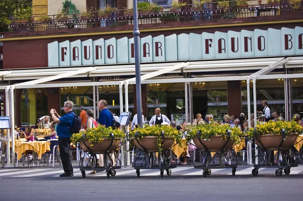 en Sorrento en Piazza Tasso Bar Fauno en los bancos