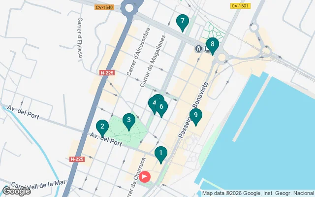 El tour comenzará en Plaza Miquel Peris i Segarra, a las puertas del Mediterráneo y postal del barrio marinero, donde la brisa del mar ya se deja notar. Desde esta plaza descubriremos la Iglesia de San Pedro, los restos de la Torre del Pinaret y nos dirigiremos a ver el tren que vola, La Panderola.