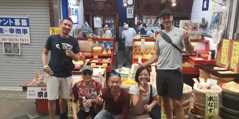 Cocina local : en el camino, le presentaremos el delicioso mundo de la comida callejera de Osaka. Pruebe el takoyaki (bolas de pulpo), el té japonés watsuka, el tofu casero y otras deliciosas especialidades en tiendas auténticas.