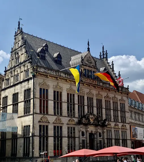 If you can see the Roland Statue, you are definitely close to the meeting point, which is, Bremen's Parliament building, the only building with a modern look in the market square. You can find me because I will be carrying a white and red flag.