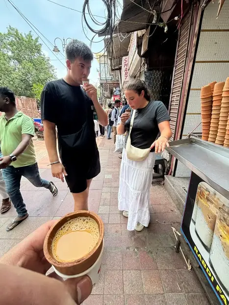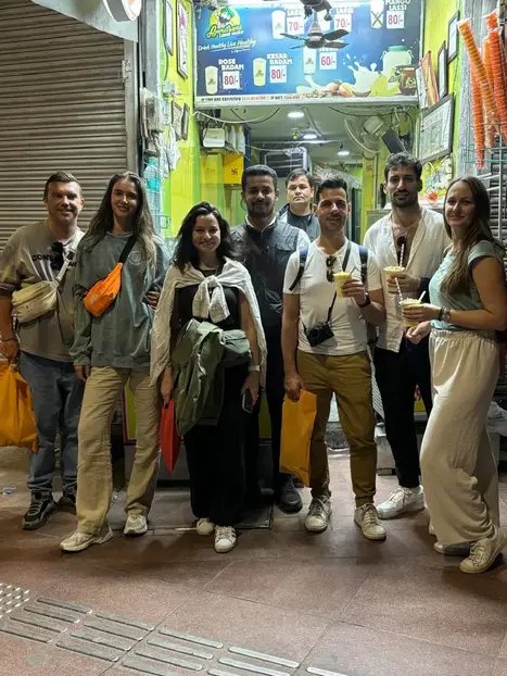 Comenzamos nuestra aventura con un paseo por el bazar junto al metro, apreciando a los lugareños que trabajan duro empujando carros pesados a través de callejones estrechos. Continuando nuestro paseo, nos detenemos en la mezquita del siglo XVII Jama Masjid. A continuación, exploramos el mercado de parafernalia de bodas Kinaari Bazaar. Caminando por esta calle cautivadora, nos detenemos para tomar una taza de masala chai (¡la bebida nacional de la India!) antes de saborear los muy queridos bocadillos locales Paranthas. Te llevaré por un callejón oculto, deteniéndonos para tomar fotos frente a havelis pintadas (mansiones) que datan del siglo XIX. Continuamos nuestro viaje a Khari-Baoli, ¡el mercado de especias más grande de Asia!