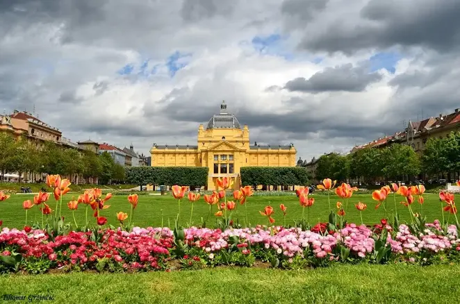 Desde allí continuaremos a través de la zona del parque también conocida como la Herradura Verde hasta la plaza principal (Trg Bana Josipa Jelačića), que es el lugar ideal si quieres celebrar otro gran éxito de los atletas croatas o tal vez tu último día de educación secundaria saltando en la fuente Manduševac.