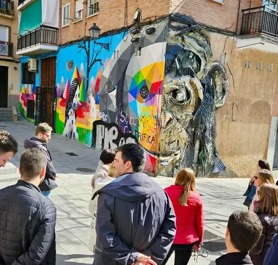 Explora el lado más vibrante y contemporáneo de Madrid en nuestro tour de arte urbano. Este recorrido te lleva por los barrios más emblemáticos como Lavapiés y Embajadores, donde el arte se ha apoderado de las paredes. Verás obras de artistas reconocidos como Okuda San Miguel, famoso por sus llamativos diseños geométricos, o el colectivo Boa Mistura, cuyas piezas llenas de poesía adornan rincones inesperados. Desde la Tabacalera, un espacio dedicado a la cultura alternativa, hasta los impactantes murales de la Plaza del Poeta Leopoldo de Luis en Tetuán, cada parada revela una nueva faceta del arte urbano madrileño. 🌈🚶♂️
