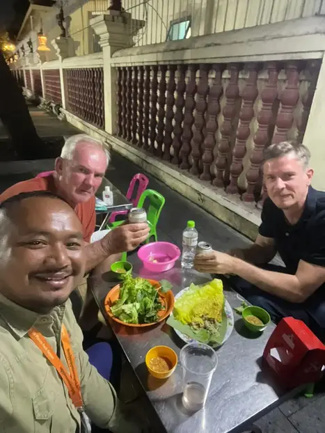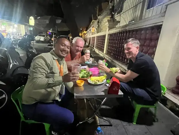 Esta aventura de arte callejero y gastronomía callejera es una combinación perfecta de cultura, creatividad y gastronomía. Explorarás la vibrante escena artística de Phnom Penh, degustarás auténticos platos jemeres y disfrutarás de la animada vida nocturna de la ciudad, todo en una velada inolvidable. Ya sea con Martin o con uno de sus guías de confianza, experimentarás el encanto urbano de Camboya a través de la mirada de apasionados lugareños.