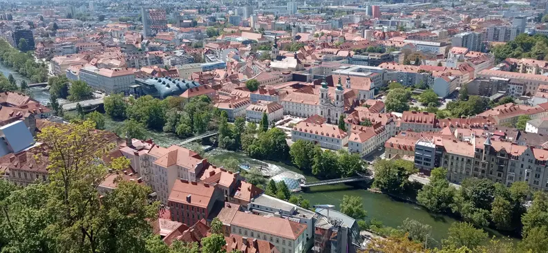 Graz es una ciudad llena de historia y encanto, desde las románticas callejuelas del casco antiguo (Patrimonio de la Humanidad por la UNESCO) hasta la escena artística moderna. El Schlossberg con su torre del reloj, la Murinsel (isla a orillas del río Mur), el futurista Kunsthaus (Museo de Bellas Artes) y los magníficos edificios renacentistas: Graz combina tradición y modernidad de una forma única.