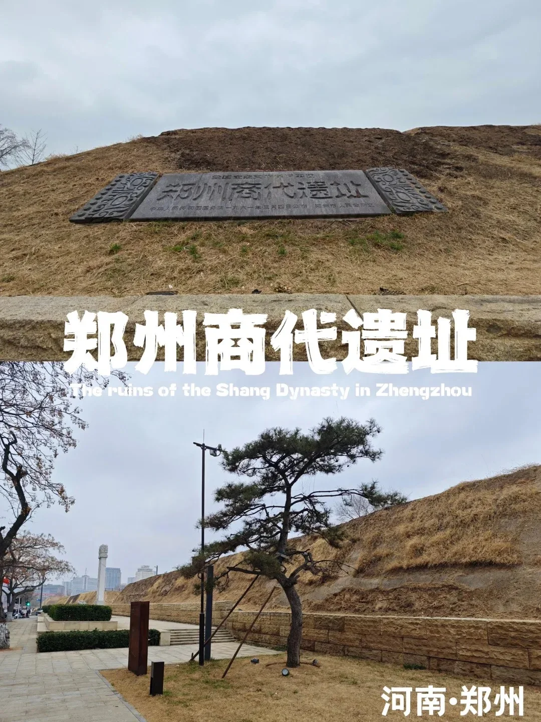 Construidas hace más de 3,600 años, estas son una de las murallas de ciudad antigua más antiguas, grandes y mejor conservadas de China de la Dinastía Shang. Se erigen como una prueba histórica crucial del estatus de Zhengzhou como una de las primeras capitales de la civilización urbana china.