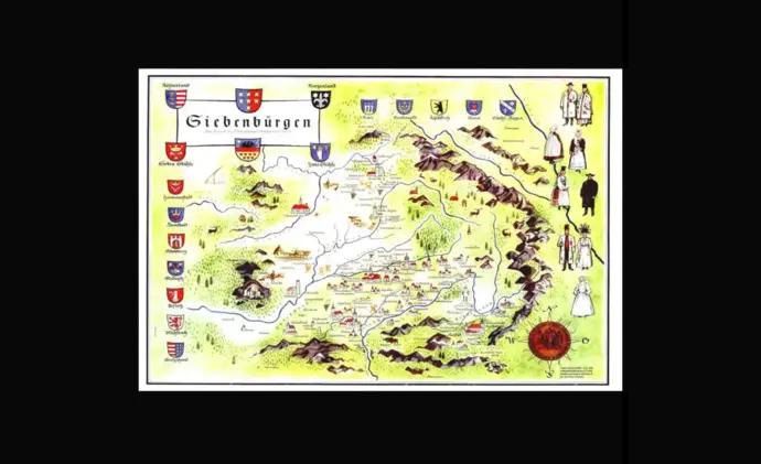 En el este [...] una agradable meseta se alza sobre las tierras bajas húngaras, pequeña en extensión, pero rica en belleza natural y tesoros. [...] En las soleadas laderas de las montañas, las vides resplandecen y florecen nobles árboles frutales; los campos de trigo ondulan en los valles; la caza recorre los bosques; y abundan los animales domésticos. Esta es la tierra de Transilvania, y donde algo falta para la felicidad de sus habitantes, ellos mismos suelen ser los culpables. (GD Teutsch: Historia de los sajones de Transilvania. 1.ª edición, Kronstadt 1858)