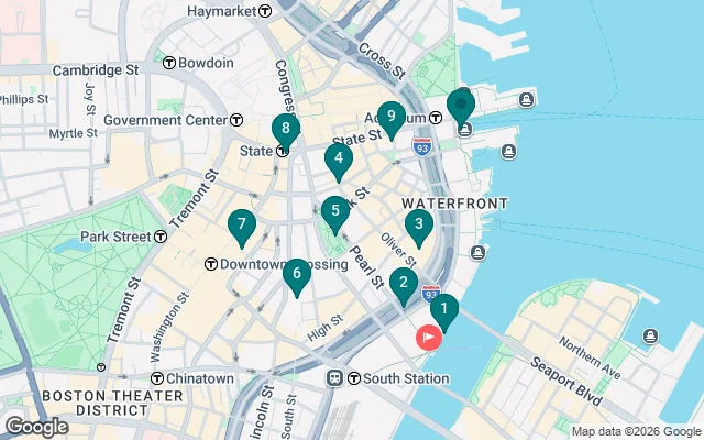 Si regresas al punto de inicio, es una caminata de 10 minutos de regreso a Atlantic Wharf, que está a 3-5 minutos de South Station (línea roja, Commuter Rail, Amtrak y Flixbus).