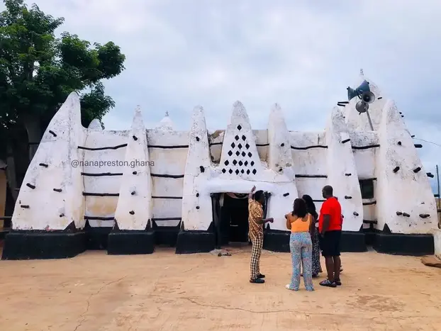 Un recorrido por Larabanga y Mole generalmente incluye una visita a la histórica Mezquita de Larabanga, conocida por su arquitectura de barro de estilo sudanés, y un safari en el Parque Nacional de Mole, donde podrá avistar fauna como elefantes, antílopes y aves. También ofrecemos free tours comunitarios, así como actividades y exhibiciones culturales.