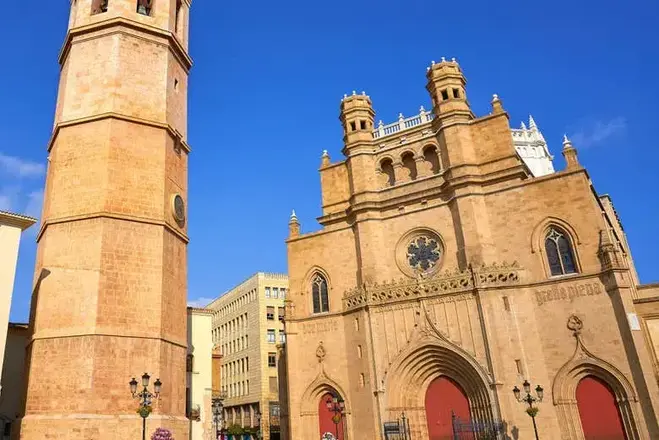 Descubriremos lugares repletos de historia, como la plaza de Tetuán, donde admiraremos la preciosa fachada del edificio de Correos. Inaugurado en 1932, su mezcla de estilos entre el neomudéjar y el modernismo valenciano le convierten en uno de los más singulares de Castellón. A continuación, nos adentraremos en el corazón de esta bella ciudad, la plaza Mayor de Castellón, donde contemplaremos el Ayuntamiento, el Mercado Central y visitaremos la concatedral de Santa María, y conoceremos a su patrona, la Virgen de Lidon. Como veremos, se trata de toda una joya del gótico valenciano. Admiraremos también su torre-campanario, el Fadri, también conocida como la Torre de Pissa de Castellón. Y finalizaremos este increíble tour, en la plaza Santa Clara, para poder disfrutar de su ocio y gastronomía. Si quieres conocer la ciudad de Castellón, su historia, costumbres, su arte y arquitectura, no lo dudes, este es el tour perfecto. No te lo pierdas!