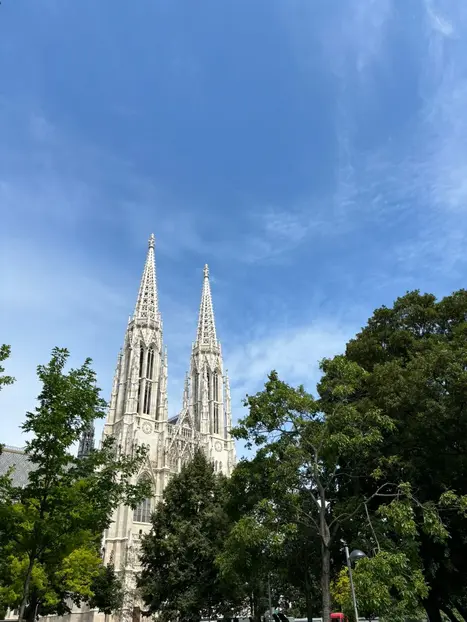A la hora indicada, busca el paraguas naranja frente a la puerta principal de la iglesia de Minoritenkirche, la estación de metro Herrengasse (línea U3, salida del metro Minoritenplatz).