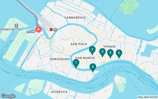 Paseando por la pintoresca Riva degli Schiavoni, caminará a lo largo de la laguna y disfrutará de impresionantes vistas de la isla de San Giorgio Maggiore, uno de los miradores panorámicos más hermosos de la ciudad.