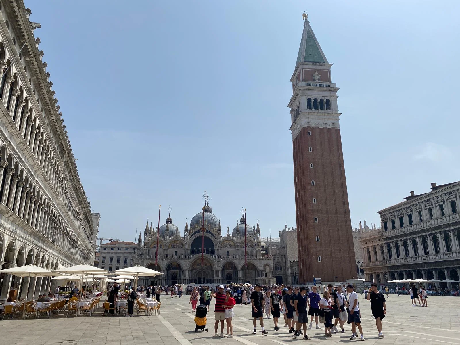 El corazón de Venecia es la Plaza de San Marcos: aquí podrá admirar la majestuosa basílica, el Campanario, la famosa fachada de la torre del reloj y el Palacio Ducal (desde el exterior). Un corto paseo le llevará al Ponte dei Sospiri, el legendario Puente de los Suspiros, que conecta el Palacio Ducal con las antiguas prisiones. ¡Una foto inolvidable!