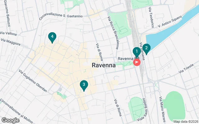 Comenzaremos nuestro tour desde la estación de tren de Rávena. Antes de entrar en el centro histórico, visitaremos la Dársena de la ciudad, el antiguo puerto de la ciudad. Luego retomaremos la vía Roma y pasaremos por Sant'Apollinare Nuovo, nos detendremos en la Piazza San Francesco para rendir homenaje a Dante (aquí está enterrado) y tomaremos la Via Cavour para llegar a la magnífica Basílica de San Vitale.