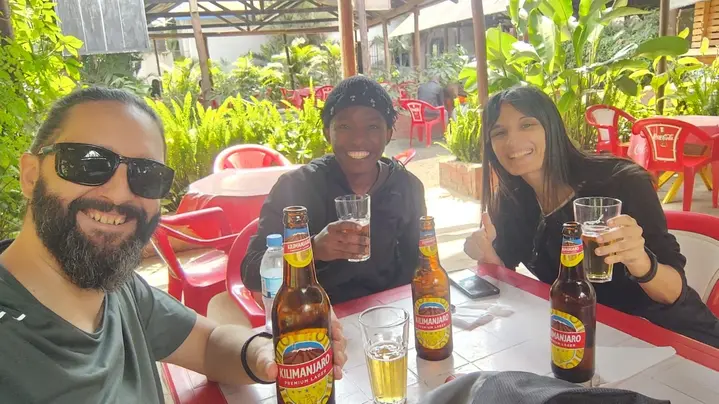 Sostendré una pequeña bandera de Tanzania justo afuera del Café Verde, junto a la Torre del Reloj. Su guía los estará esperando con una gran sonrisa, listo para darles la bienvenida.