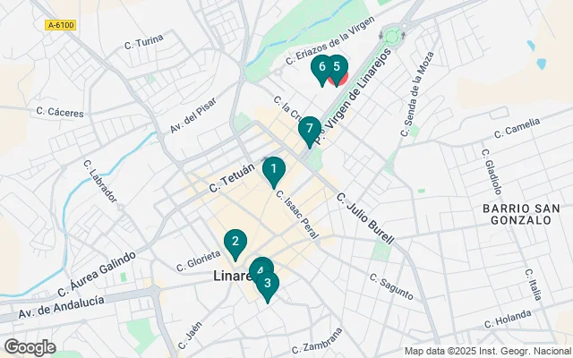 Empezaremos enfrente de la Estación de Madrid, en el mismo paseo de Linarejos, rambla con 100 bancos de piedra que cuentan la historia de Linares en fotos reales. Hablaremos de Linares y Cástulo, de la importancia de las minas de plomo y veremos el centro de interpretación del paisaje minero. Hablaremos, de la estación de Madrid y de la importancia del ferrocarril en Linares, que llegó a contar con cinco estaciones de tren e incluso tranvía. Iremos por el paseo hasta la fuente de la Constitución y nos daremos de bruces con la plaza de toros, donde Manolete hizo su última faena. Veremos el monumento de este torero, el paseo de la fama de los toreros nacidos en Linares y hablaremos, en los jardines de Santa Margarita ante sus bustos, de los grandes benefactores de la ciudad: los marqueses de Linares. Bajaremos hasta el centro de la ciudad, pasando por la primera sucursal del Banesto fuera de Madrid y por la sede del Banco de España (actual biblioteca municipal). Llegaremos al centro neurálgico de la ciudad, las Ocho Puertas y seguiremos hasta el ayuntamiento. Nos detendremos en la puerta de la Real Casa de la Fundición y la Moneda. Subiremos por la plaza del ayuntamiento para admirar el impresionante templo de Santa María que preside toda la plaza, y terminaremos hablando del Pósito, que está en un lateral de la plaza y despedirnos después de casi dos horas junto a la estatua de la figura más emblemática de la ciudad, el cantante Raphael cuyo museo está al lado.