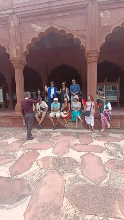 En el Fuerte de Agra, explora la Puerta Amar Singh, el Jahangiri Mahal, el Diwan-e-Aam (Sala de Audiencia Pública), el Diwan-e-Khas (Sala de Audiencia Privada), el Musamman Burj, el Khas Mahal, el Sheesh Mahal y la Moti Masjid.
