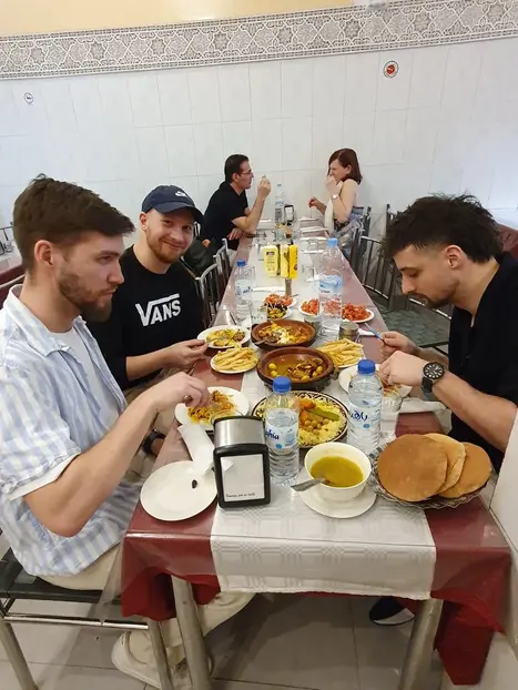 No se trata solo de historia, deléitese con dulces como chbakiya, magrout kaab ghazal, turrón... Pruebe comida callejera como sopa harira, maagouda, panqueques y bebidas como té de menta y té real.