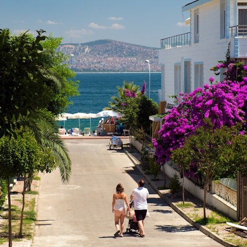 Explora la vegetación y las históricas mansiones otomanas de estas islas sin coches. Luego, da un paseo en coche de caballos para ver las elegantes villas y las coloridas buganvillas.