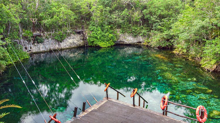 - Existe la posibilidad de nadar y lanzarse en tirolina por el cenote Pakal Nah.