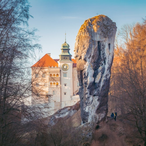Maravíllate con los milagros de la naturaleza, como la asombrosa formación rocosa del Club de Hércules, y visita el castillo de Pieskowa Skala para admirar uno de los mejores ejemplos de arquitectura renacentista de Polonia. Pieskowa Skala, que ahora alberga una sucursal del Castillo Real de Wawel, fue construido por el rey Casimiro III en la primera mitad del siglo XIV y está asombrosamente situado al borde de un acantilado de piedra caliza.