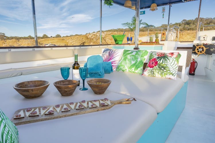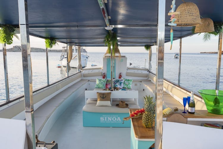 Paseo en barco al atardecer con tapas, barra libre y deportes acuáticos en Ibiza