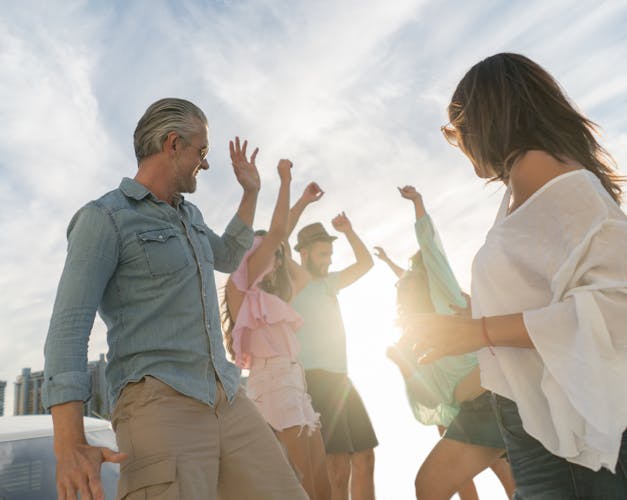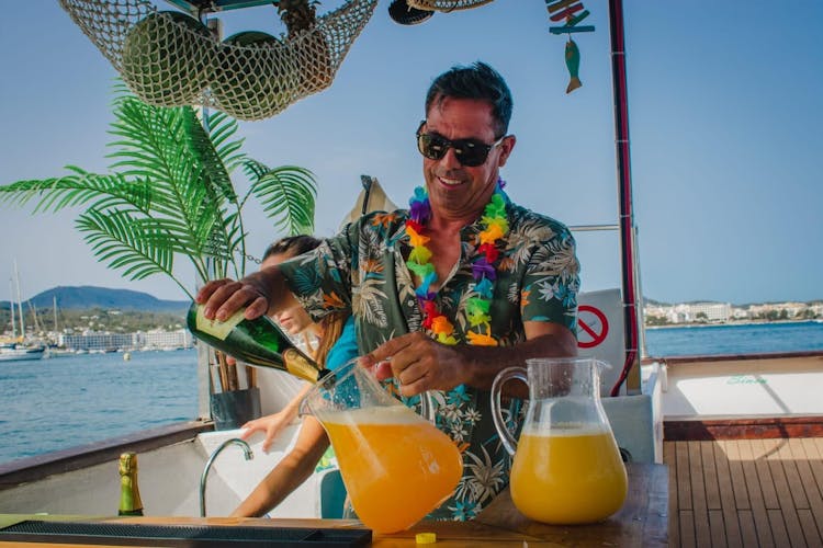 Zarpe hacia la puesta de sol más icónica de Ibiza, con barra libre, deliciosas tapas y un gran final frente al Café del Mar y actividades acuáticas incluidas.