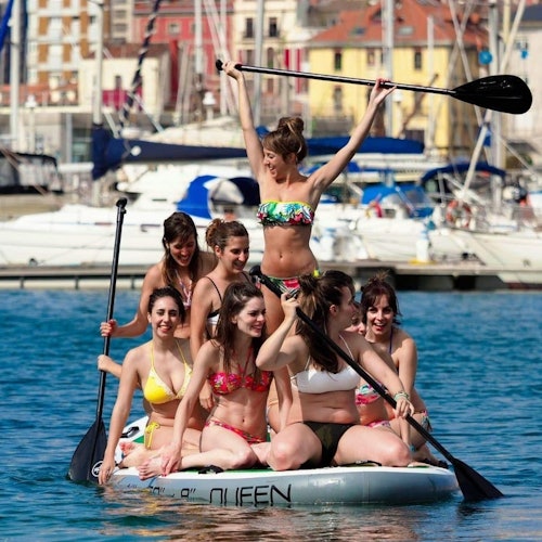 Haz paddle boarding y disfruta de un día lleno de emoción y diversión en el mar. Reúne hasta ocho personas y remad juntos en una gran tabla de paddle surf en el Mediterráneo. Pasa un rato estupendo con tus amigos o familiares tranquilamente, ya que no se requiere experiencia previa.