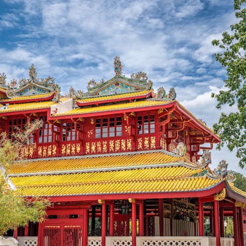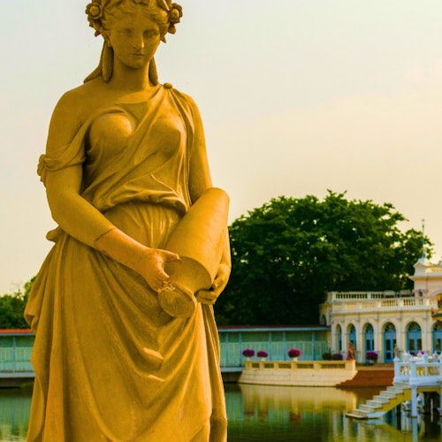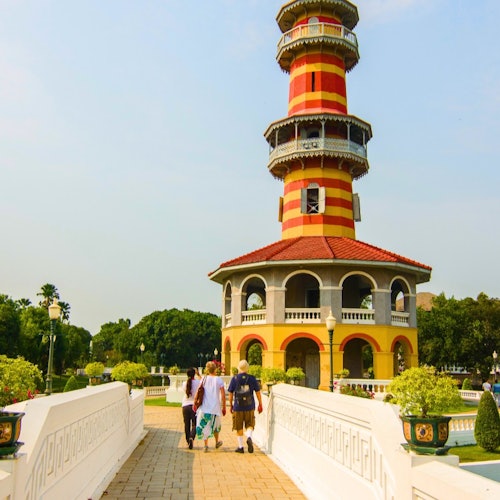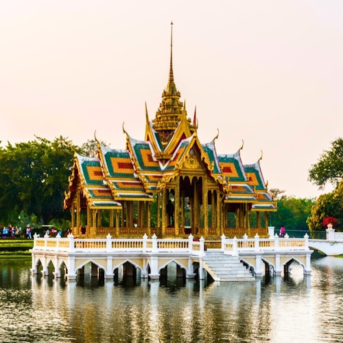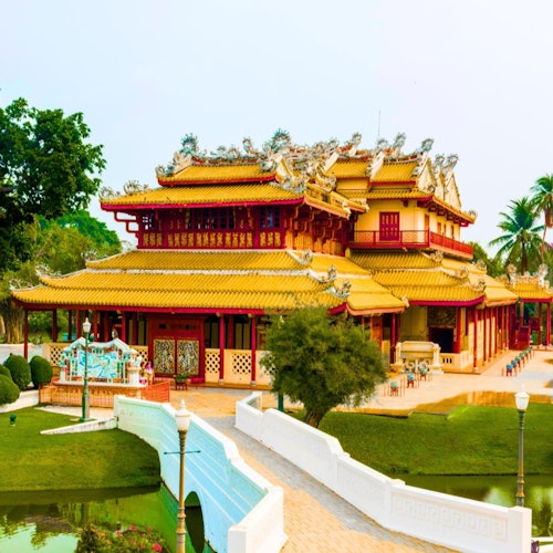 Visita los lugares históricos de Ayutthaya en minivan y barco en una excursión de un día desde Bangkok. Empieza en el Palacio de Bang Pa-In, conocido por su mezcla de estilos arquitectónicos. Pasea por el complejo de templos, contempla la torre de vigilancia y contempla el lago.