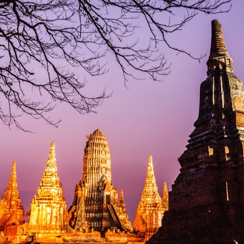Haz una parada en Wat Yai Chai Mongkol, en el río Pa Sak, antes de almorzar en un restaurante local junto al río. Por la tarde, visita Wat Phra Sri Sanphet y Wat Mahathat. Termina el viaje con un paseo en barco por las ruinas de la antigua ciudad antes de regresar a Bangkok.