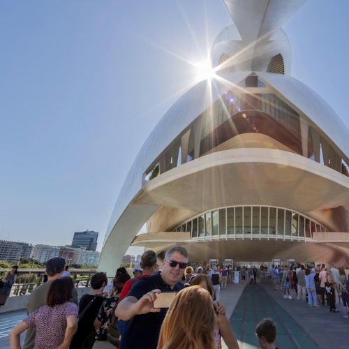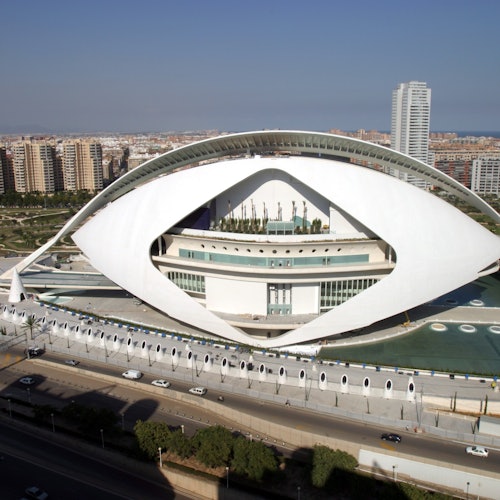 Contempla la arquitectura diseñada por Santiago Calatrava. Sigue el texto y las imágenes del folleto a medida que avanzas por el recorrido. Entra en las salas que acogen representaciones de ópera, danza y música.
