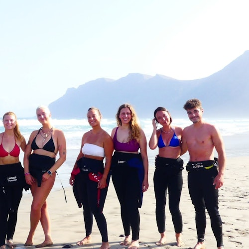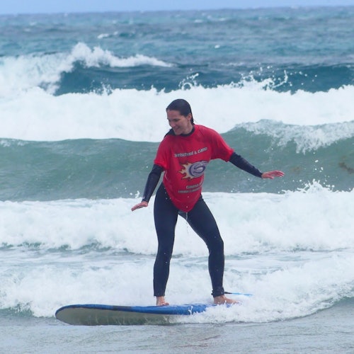 Aprende a hacer surf en la playa de Famara, en Lanzarote. Tanto si eres principiante como si tienes algo de experiencia, únete a una clase de surf de 4 horas para desarrollar tus habilidades.