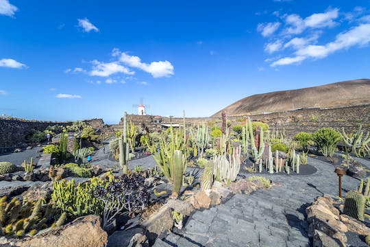 A continuación, visite el Jardín de Cactus, donde Manrique plantó más de 7.000 cactus de todas las formas y tamaños. A continuación, súbase a un barco y navegue hasta La Graciosa, una isla volcánica rodeada por la mayor reserva marina de Europa. Después, disfrutará de un almuerzo y de tiempo libre en sus playas vírgenes.