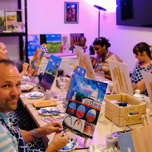 Roma: Clase Paint & Sip + Vino ilimitado
