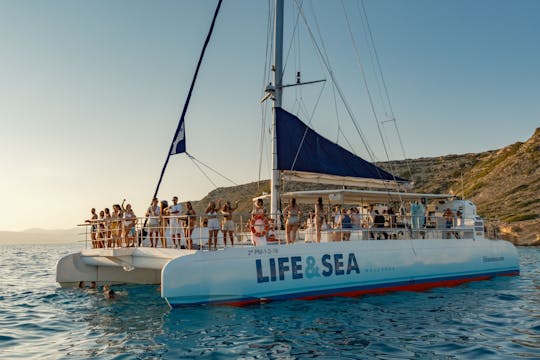 Disfrute navegando por la bahía de Palma con música agradable, sol y un paisaje impresionante en este crucero en catamarán. Baile, nade, practique snorkel o simplemente relájese en las tumbonas. El catamarán está diseñado para ofrecer el máximo confort mientras disfruta de la relajante brisa mediterránea.