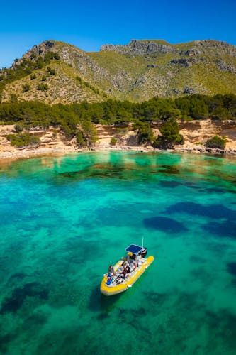 Descubra el esplendor de la costa norte de Mallorca desde Can Picafort. Mientras navega junto a las impresionantes vistas de la Sierra de Tramuntana, prepárese para un día lleno de belleza natural y una vibrante vida marina.