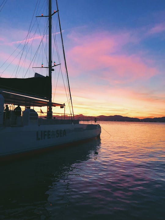 Viva la puesta de sol como nunca antes Contemple cómo la luz brilla y baila sobre las olas. La espaciosa cubierta y las tumbonas chill-out permiten una experiencia íntima y confortable.