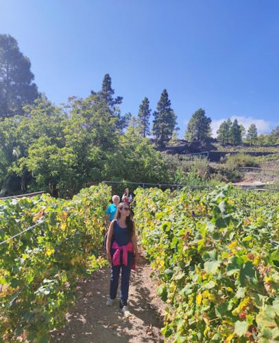 Disfruta de una cata de 4 vinos diferentes, acompañada de 4 tapas canarias, y camina entre viñedos con increíbles vistas al mar y a la montaña.