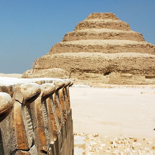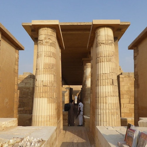 Trasládate a Sakkara, a sólo 27 km al suroeste de El Cairo, para explorar la Pirámide Escalonada construida para el rey Zoser. Aprende sobre la evolución de la construcción de pirámides desde las simples mastabas hasta su forma actual.