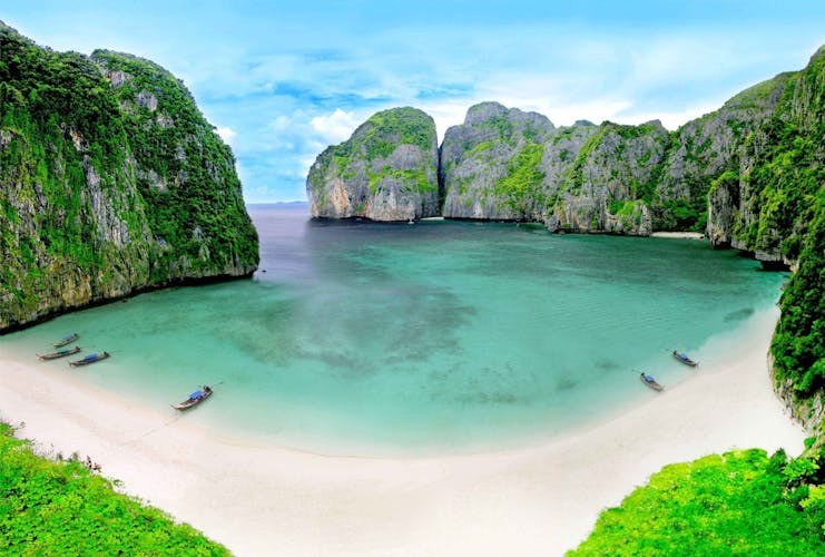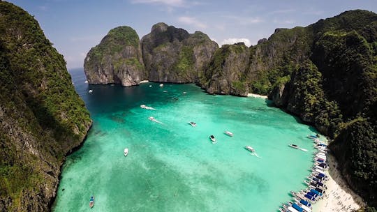 Embárquese en un viaje inolvidable a las islas Phi Phi, partiendo de Phuket con la tranquilidad de primera hora de la mañana, antes de que las multitudes de turistas acudan a las islas. La primera parada es la impresionante bahía de Maya, un espectáculo que no debe perderse.